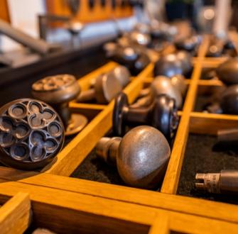 The custom chandelier, designed in collaboration with the interior designer and the lighting fabricator, Allied Maker, securely floats rods between a foundational metal ring and the skylight’s opening. Numerous studies allowed for precision in the number, exact placement, and size of each pendant, and experience of the chandelier from multiple viewpoints.