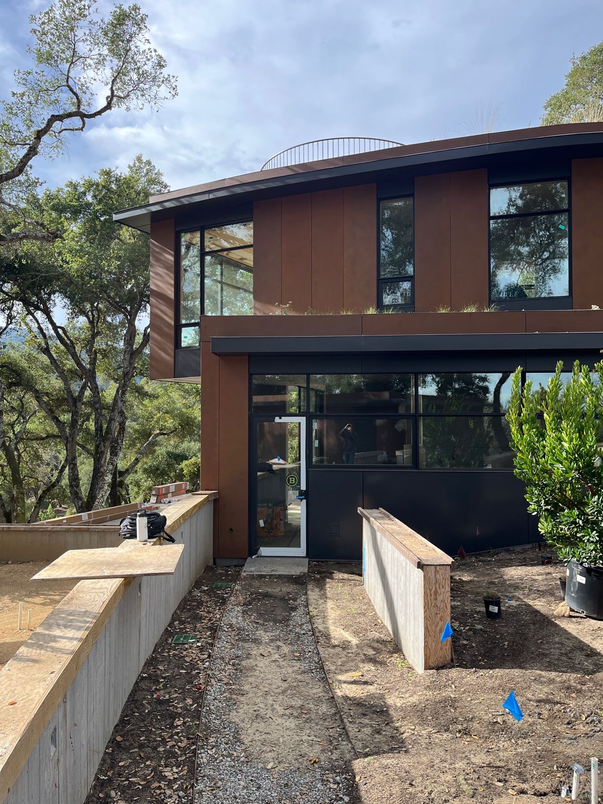 Considering fire resiliency and sustainability, the building is enveloped by durable, low-maintenance modular weathering steel panels and aluminum windows. The eroded material aesthetic reinforces the conceptual merging of architecture and landscape.