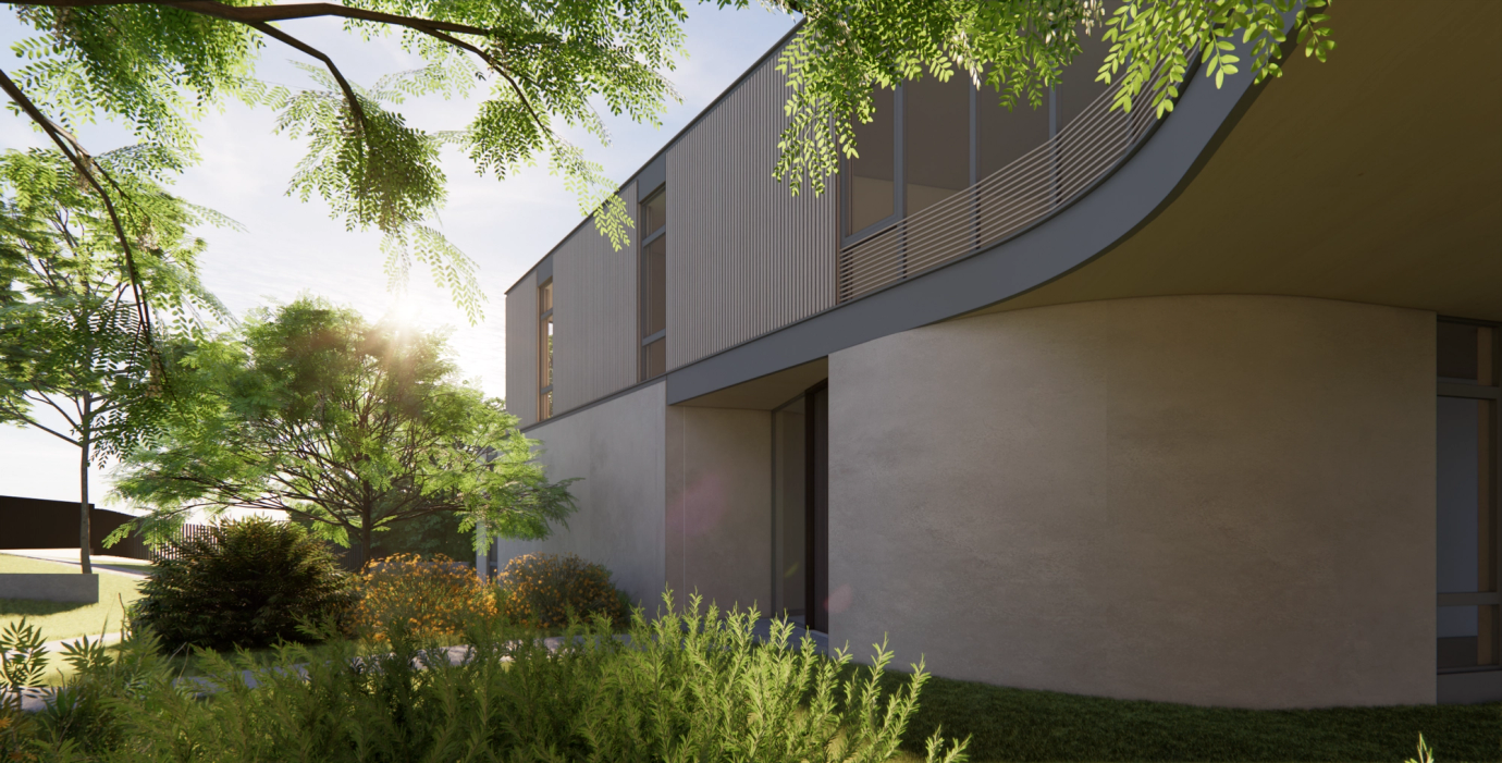 A young San Francisco family looking to relocate to the South Bay purchased a corner lot in a residential neighborhood, excited by the untapped potential of the private, lush site. Creating a continuous, flowing, immersive landscape on this gently sloping property served as the project's starting point and influenced the home’s organic, curving forms.
