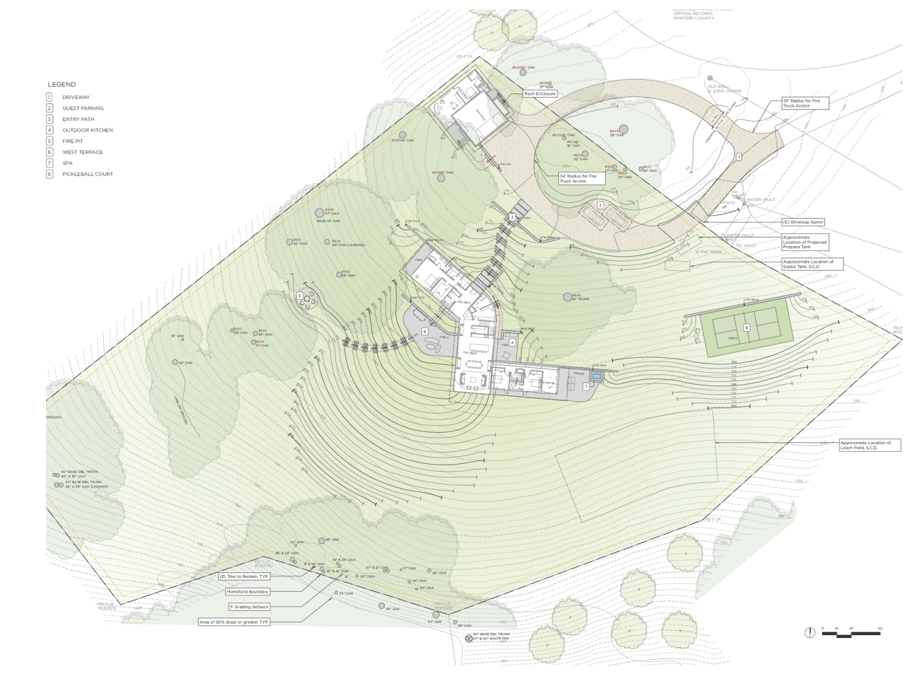 A particularly scenic plot in the Santa Lucia Preserve sits at a knoll's crest, the point at which the Pacific marine layer concludes at a grassy ridge. When standing at the plot's highest point, groves of old growth Oak trees frame 300-degree views from the misty ocean to the northwest, to a rolling forested valley and gold grasslands to the southeast.