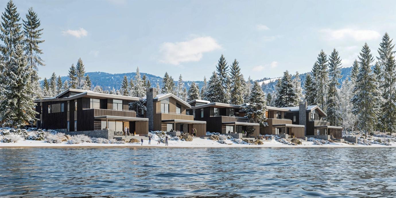 In place of the longstanding Ferrari’s Crown Resort, our studio was asked to design mountain modern condos and townhomes - both developer and architect were sensitive to the long history of the hotel and wanted to respect its scale on the lake. We also remain conscious of maintaining the warm family atmosphere associated with the half-century old resort.
