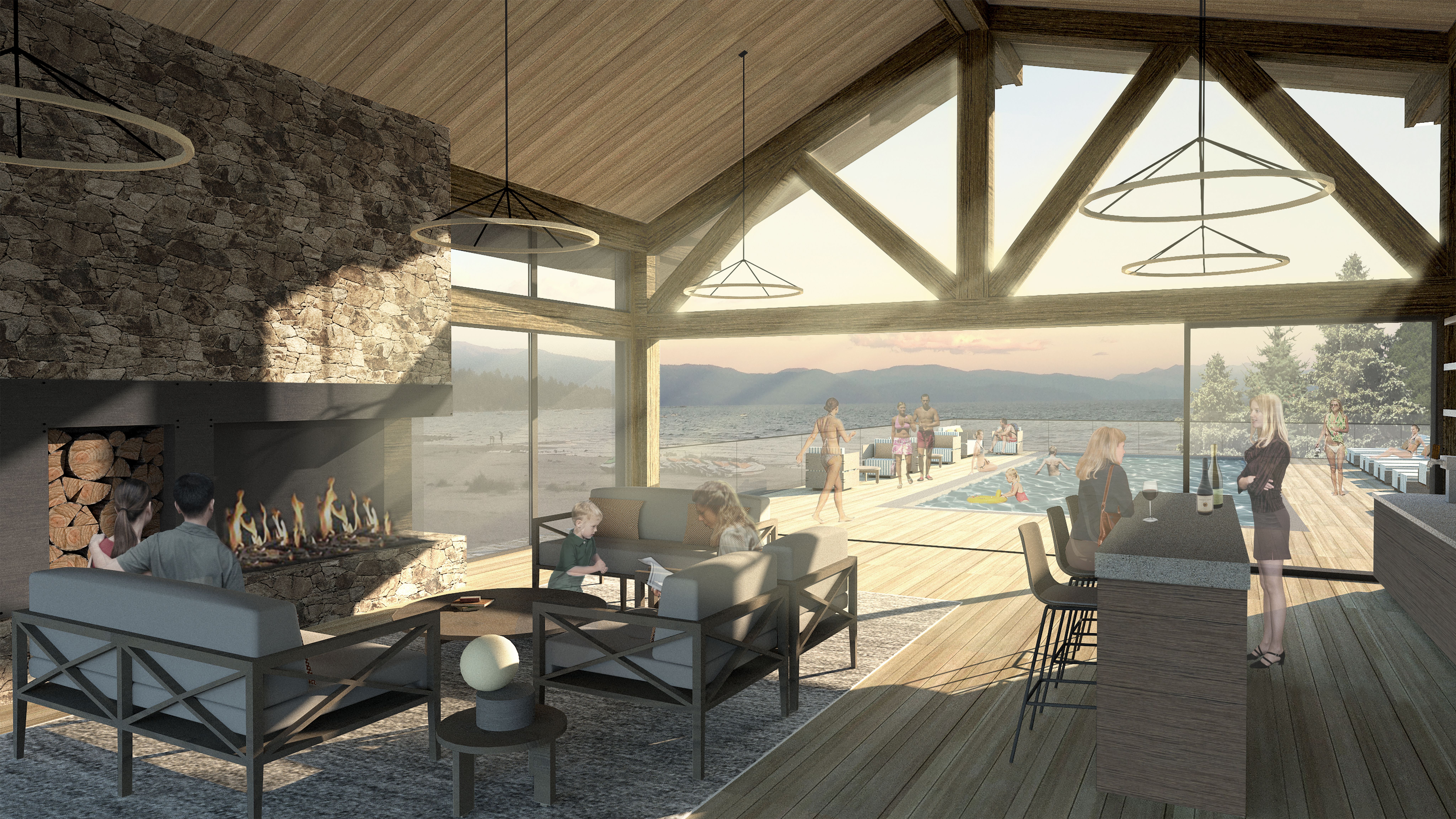 Beside the homes will be a beachside club; the bottom level a restaurant open to the public while the upper pool deck and club lounge remain exclusively for the adjacent homeowners and future hotel guests. Along the street, two retail buildings were designed to hold stores that fit the local aesthetic of the Kings Beach streetscape.