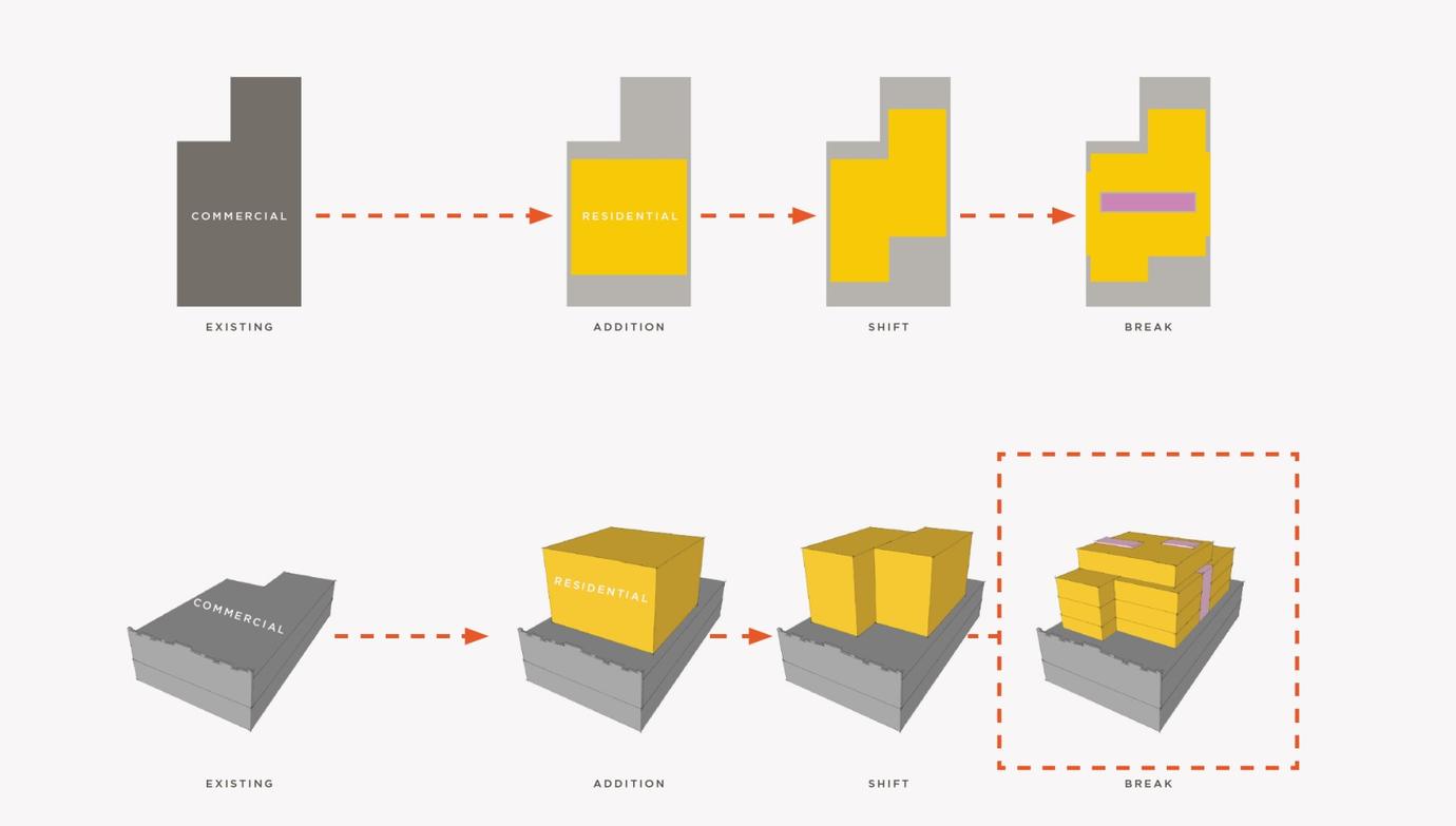 Our clients at 1650 Pacific Avenue were looking to transform a two story commercial storefront with a historic façade into a modern multiuse building, challenging our designers to craft a clean and simple design that not only preserves a historic building, but also seamlessly connects a modern addition stylistically, functionally, and beautifully.