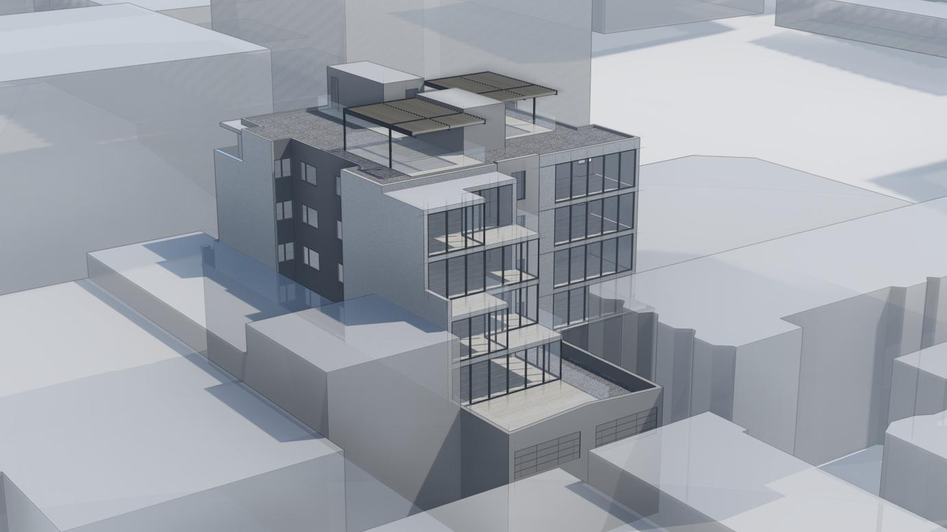 The updated design wraps around a central core - acting as a structural spine, as well as an access point that residents and visitors will use to access every level of the building, culminating in a communal roof deck with sweeping views of the Golden Gate Bridge and the San Francisco skyline. Glassy units facing north will open up onto private terraces overlooking the bay, and units facing towards Pacific Avenue flaunt protective screens to ensure privacy, while maintaining a visual connection to the surrounding neighborhood.