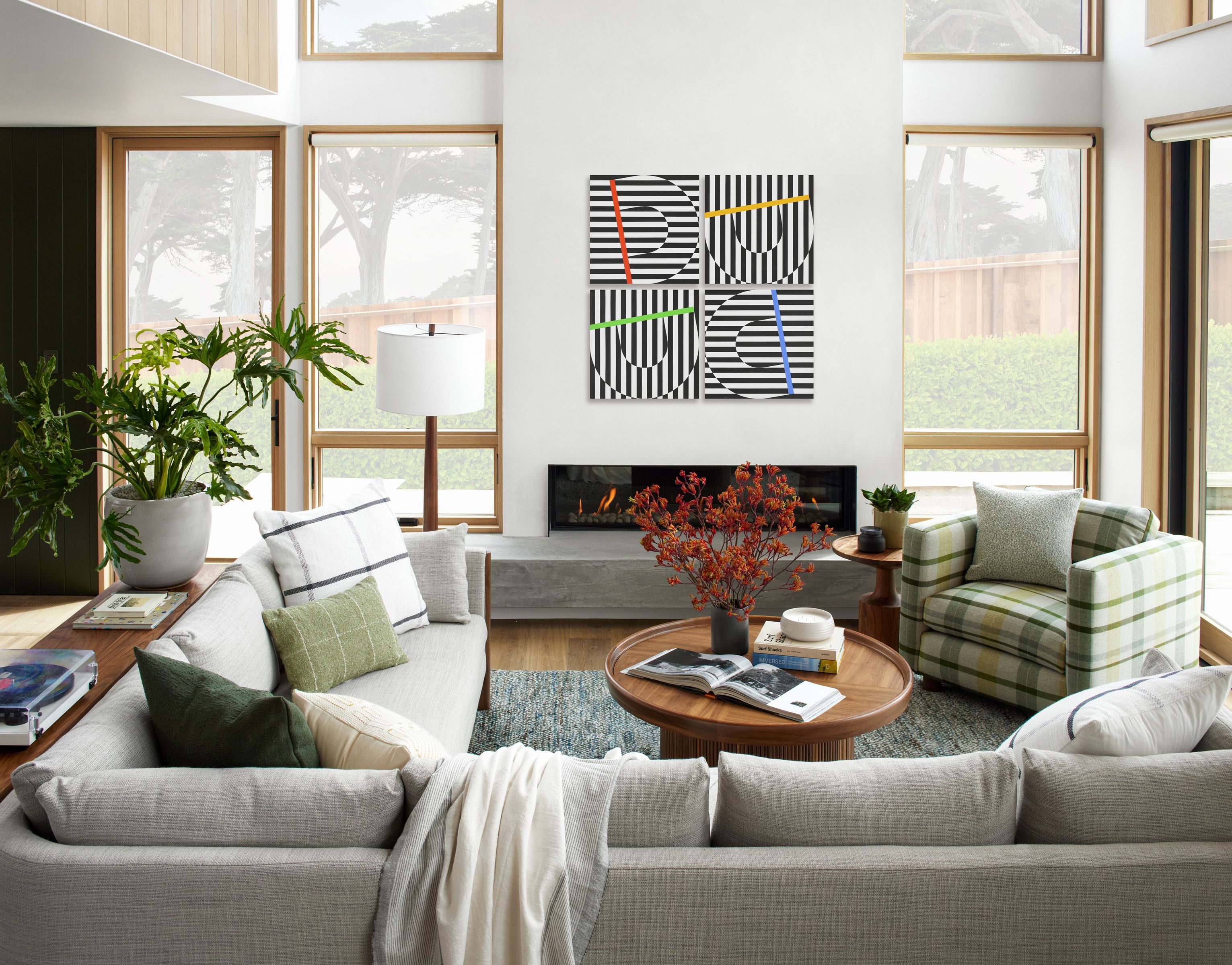 Because of the proximity to the ocean and the family’s love of surfing, a key directive was to bring a SoCal surf vibe to the home. "They were really drawn to a warm, modern aesthetic," says Holbrook, who helped transform the main living area from a cramped series of segmented spaces to an open, warm gathering place.