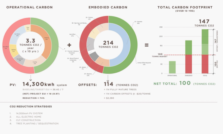 Stone’s Throw energy use targets net zero and is all electric, aided by advanced modeling to optimize the home’s thermal performance. With fire resiliency top of mind, non-combustible exterior cladding and defensible space around the home provides peace of mind.