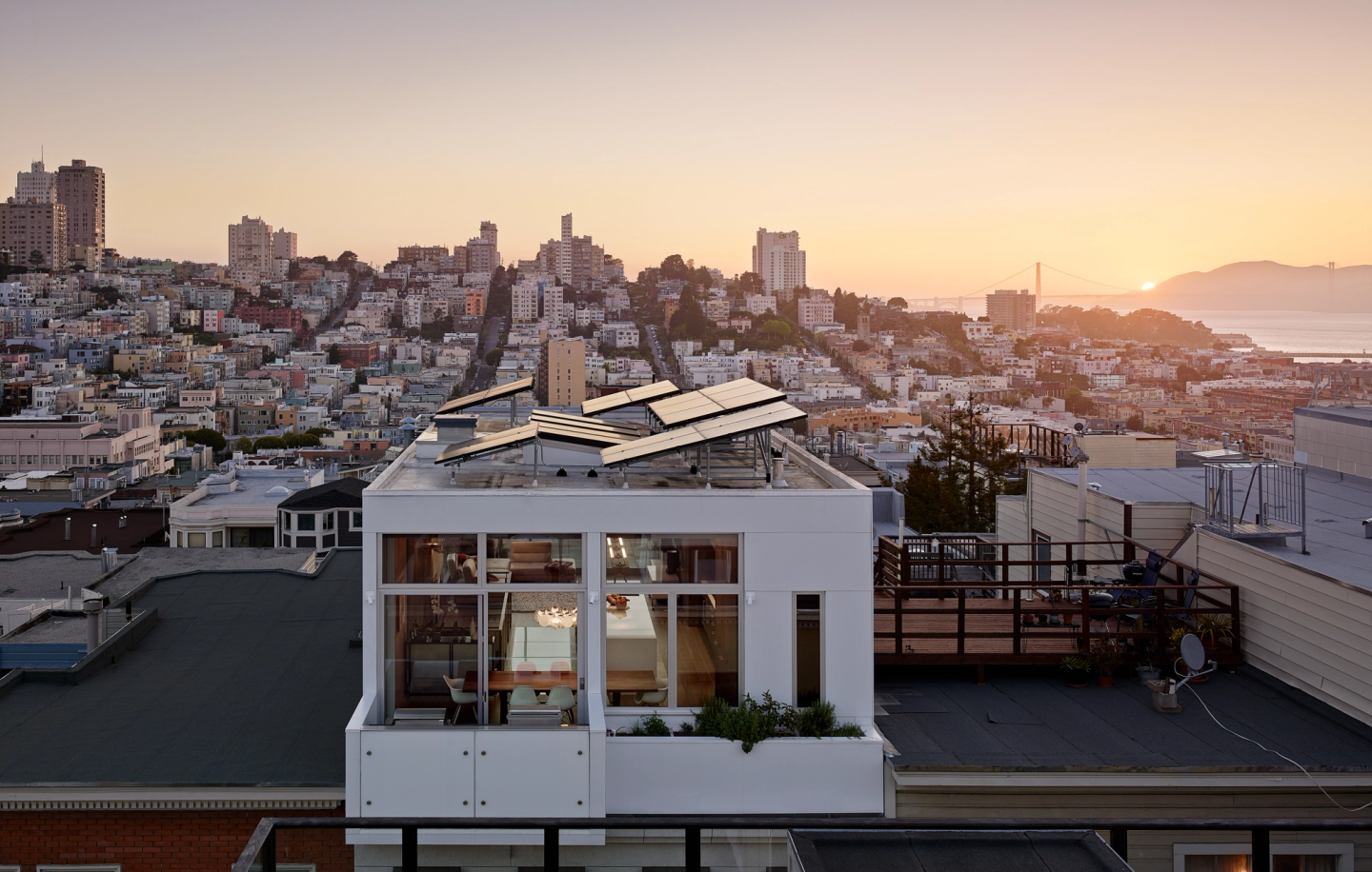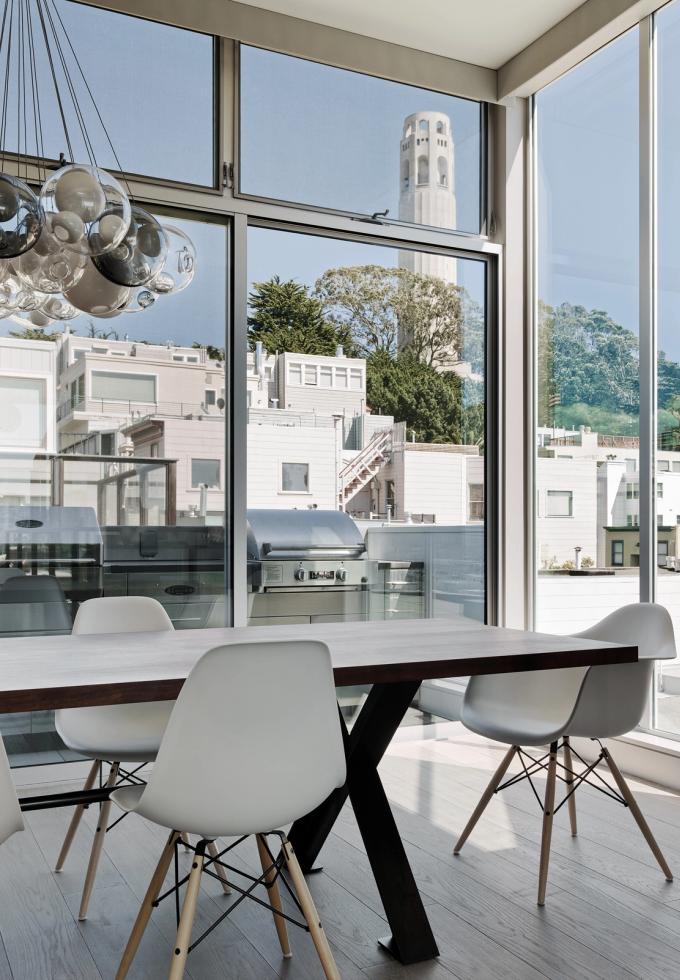 The original structure at Telegraph Hill suffered from a plain, unarticulated stucco façade and unusually narrow, chopped-up interior spaces. However, its tall ceilings and uncaptured sweeping views of the Golden Gate Bridge, Coit Tower, and downtown San Francisco inspired our transformation, centered around the modernization of the apartment unit on the second floor, inviting in views and light from every direction.