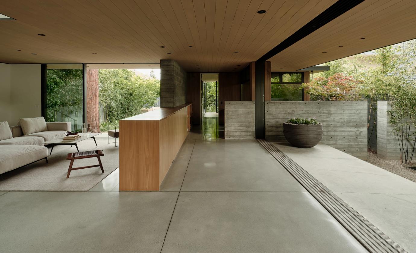 The Sanctuary is light and site-sensitive, built on a foundation slab elevated to preserve the roots of the 100-year old heritage oak that inspired the home’s design. Fully embracing the principles of biophilia, the home opens completely onto a web of native plants, view gardens, and courtyards, maximizing the client’s connection to the outdoors and creating a sense of refuge from nearby Palo Alto.